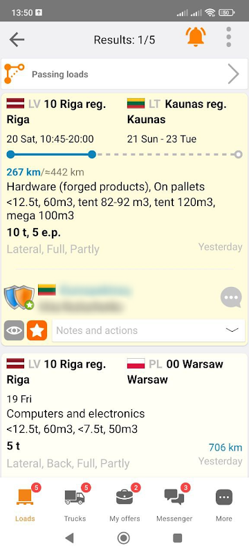 A cada dia, cerca de 25.000 ofertas de frete grátis e cerca de 15.000 ofertas de transporte são colocadas no banco de dados, nos países bálticos, na Europa e na Rússia.