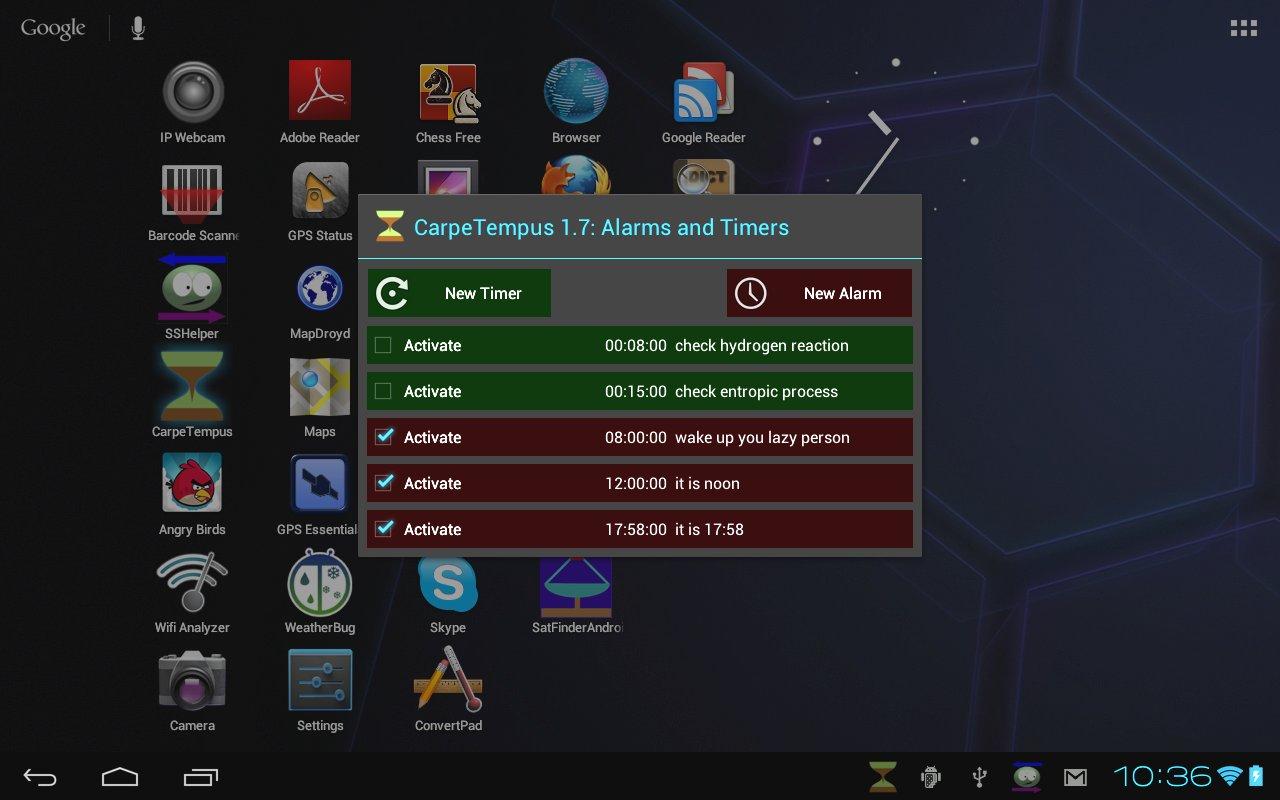 CarpeTempus é um poderoso aplicativo de alarme / temporizador completo, o Android.