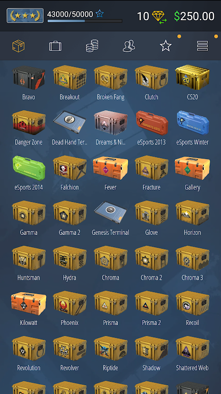 • Case Simulator Autêntico: Nossos dados e taxas de drop são baseados em milhares de amostras para oferecer uma experiência de unboxing realmente fiel.