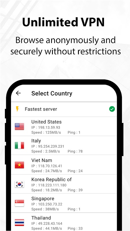 Velocidade e largura de banda verdadeiramente ilimitadas sem expiração de sessão ou quaisquer limitações. Proteja a privacidade dos dados, a segurança das informações pessoais e a segurança da Internet enquanto a VPN estiver LIGADA.