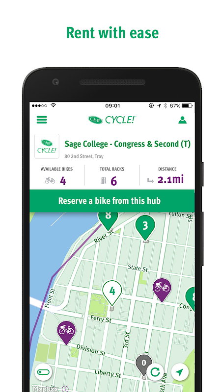 Ciclo CDPHP! é impulsionado por CDTA para oferecer uma forma alternativa de transporte que suporta saudáveis, estilos de vida activos e também oferece uma forma divertida e fácil de explorar nossas comunidades. Quando você entrar, você terá acesso a 160 bicicletas e 41 estações em todo Albany, Schenectady, Saratoga Springs, e Troy. As bicicletas podem ser desbloqueados de uma estação e deixados em qualquer outra estação ou bicicletário público (por uma pequena taxa adicional), tornando-o perfeito para viagens one-way.