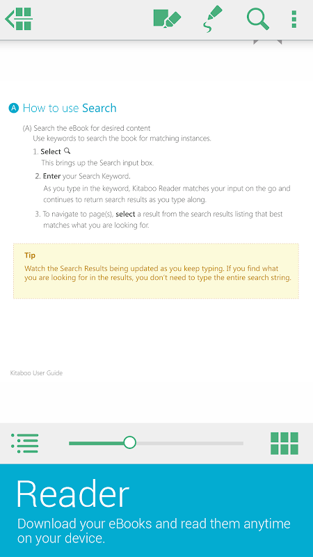 • Full text based search capability to search any content within the eBook.
