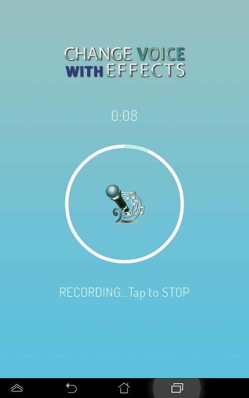 Modificador de Voz voz changer é muito simples de usar. Grave sua voz, ou usar um gravação do seu telefone, selecione um efeitos sonoros e aplicá-lo clicando em um botão. Jogue a nova gravação de voz e ouvir os sons engraçados , salvá-los e defini-las como ringtones COOL ou notificações ou compartilhá-los se quiser.