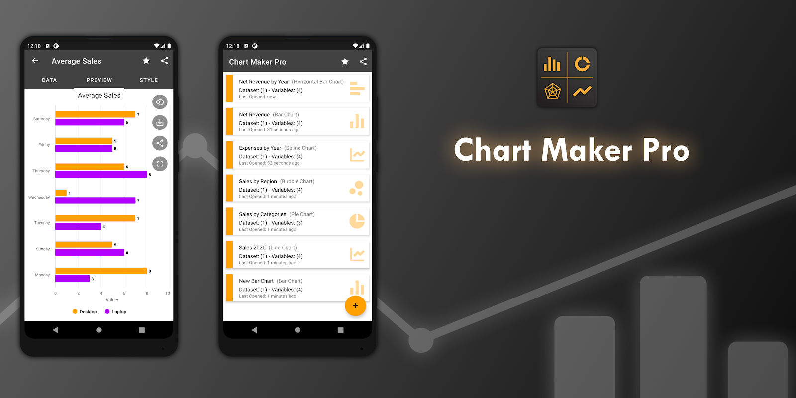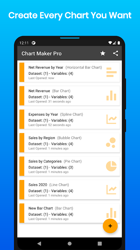 Crie gráficos facilmente com o Chart Maker: gráfico de barras, gráfico de linha, gráfico de pizza e muito mais