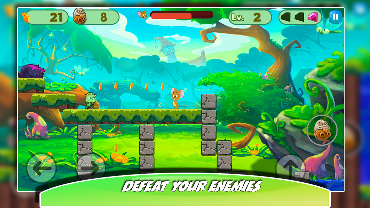 Do you want to try a super funny game in the jungle of the most famous characters in the cartoon world? Do you really want to have a chases adventure between stupid cat and naughty little mouse? Jerry world adventure is our new game that will give you an opportunity to get these funny moments in a cool adventure with those naughty characters.
