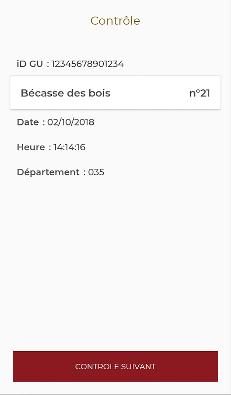 Qualquer controlador ONCFS, bem como qualquer agente comissionado das federações de caçadores de departamentos, pode ativar o leitor QRCode seguro, permitindo a descriptografia das amostras declaradas pelo caçador.