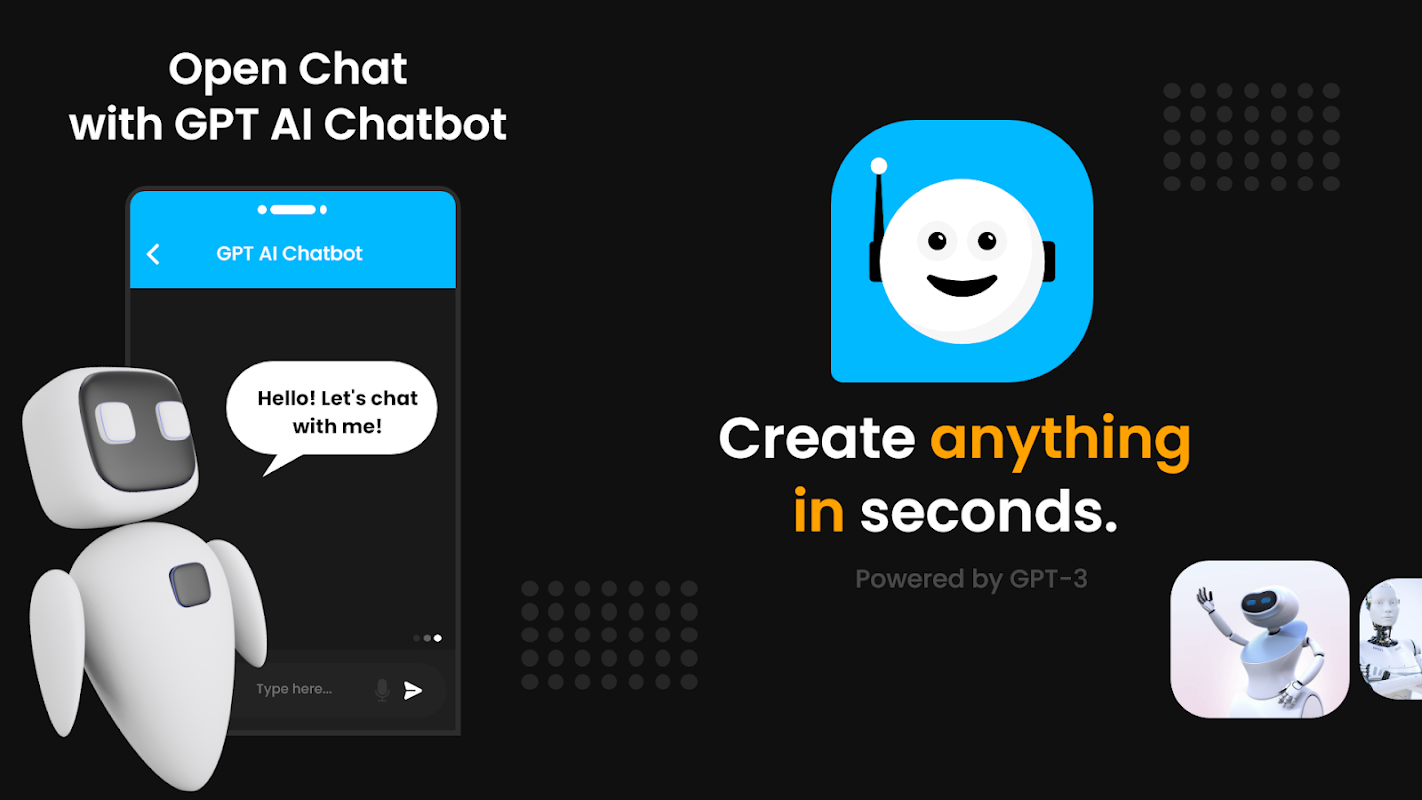 Pergunte algo ao bot GPT de bate-papo inteligente. Ele pode responder a qualquer pergunta em poucos segundos. Nenhum registro necessário. Basta conversar e nosso incrível chatbot irá ajudá-lo. Existem seis bots de bate-papo disponíveis no aplicativo.