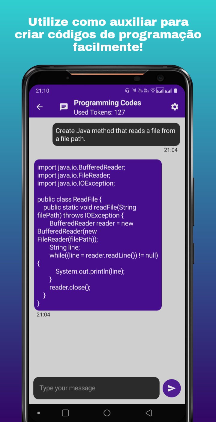 R: Não se preocupe, o aplicativo não compartilha ou coleta a sua chave de API de nenhuma forma. Tanto a chave de API quanto as mensagens só ficam salvas localmente no seu dispositivo. Você pode conferir o consumo da sua conta e/ou revogar o uso da sua chave de API a qualquer momento no site da OpenAI.