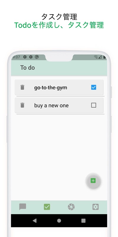 Todoページでは、やりたいことを明白にリストをすることができます。Todoリストが増えすぎた時には、削除もできます。