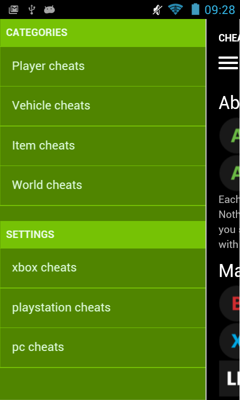 O aplicativo contém uma lista de fraudes constantemente atualizado para Grand Theft Auto V.