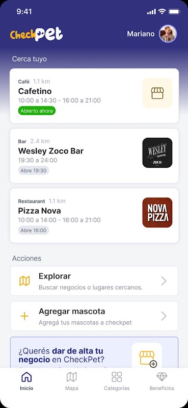 Conecte-se com empresas e serviços que aceitam animais de estimação para desfrutar com seu animal de estimação.
