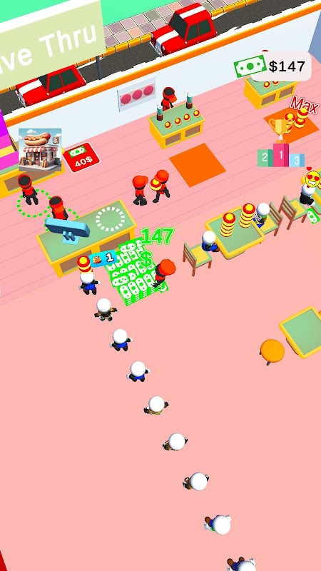 Construa seu império de cheesecake: expanda seus negócios, abra novas lojas e veja seus doces sonhos se tornarem realidade! Cada cliente satisfeito aproxima você de se tornar o melhor magnata do cheesecake. (Imagem de uma loja de cheesecake movimentada com clientes satisfeitos)