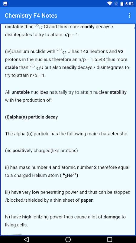 Leia on-line e off-line, tudo do formulário Quatro notas para o assunto de química.