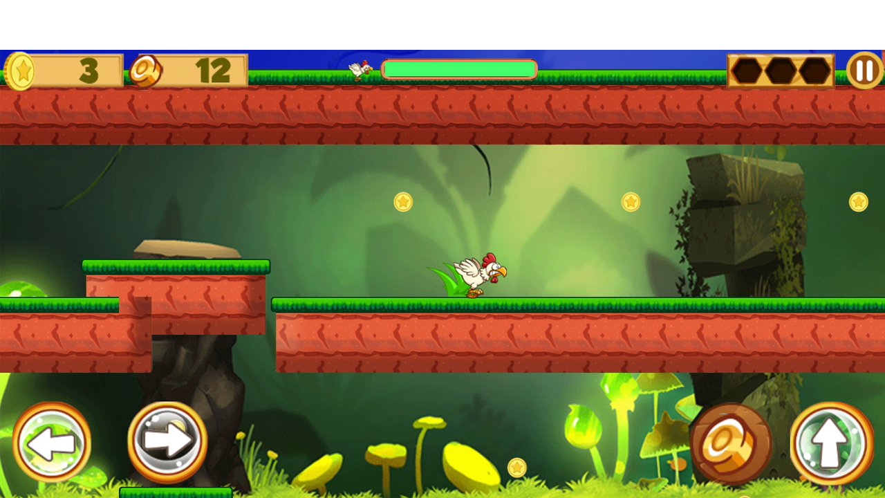 Aventura de corrida de frango: uma fuga de aventura !!! é um simples jogo de plataforma 2D de