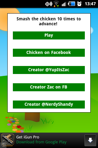 Crush the chicken! This fun, addictive game from TeraTech Mobile challenges your hand-eye coordination and let's you crush chickens!