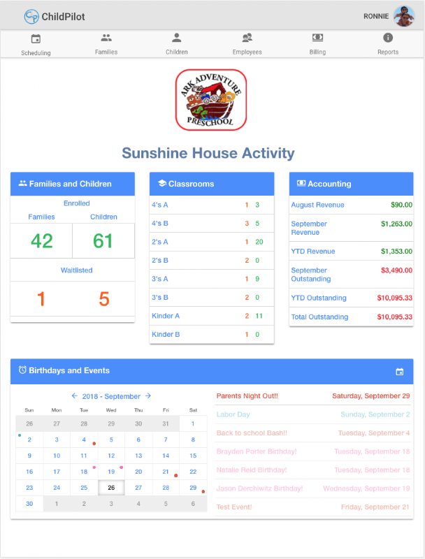 Gerencie facilmente as famílias, o faturamento e a equipe do centro de assistência infantil.