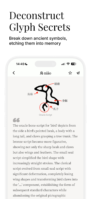 Oráculo Chinês, Glifos de Caracteres do Oráculo e História