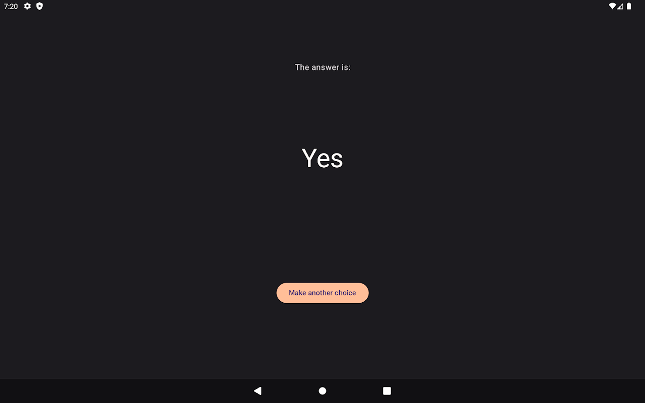 Lutando para escolher? Este aplicativo simplificado oferece respostas claras de 'Sim' ou 'Não' para seus dilemas diários. Basta pensar na sua pergunta, clicar em “Tomar uma decisão” e deixar o aplicativo fazer o resto. É perfeito para decisões diárias triviais, como escolher uma refeição ou ir ao cinema. Com seu design minimalista e solução de um toque, é a ferramenta definitiva para aquelas pequenas escolhas que o confundem. Torne a escolha fácil - experimente agora e aproveite a tomada de decisões com facilidade!