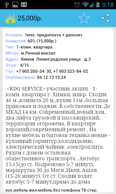 Любой поисковый запрос можно сохранить. Так же имеется возможность отправлять предложение по аренде/продаже квартиры в другие приложения установленные на смартфоне, например, в записную книжку.