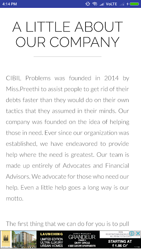 CIBIL Problems was founded in 2014 by Miss.Preethi to assist people to get rid of their debts faster than they would do on their own tactics that they assumed in their minds. Our company was founded on the idea of helping those in need. Ever since our organization was established, we have endeavored to provide help where the need is greatest. Our team is made up entirely of Advocates and Financial Advisors. We advocate for those who need our help. Even a little help goes a long way is our motto.