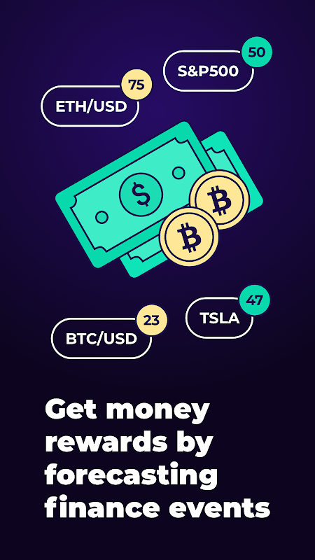 Faça previsões precisas sobre o mercado de ações, criptomoeda e outros ativos de criptografia e ganhe dinheiro real todos os meses!
