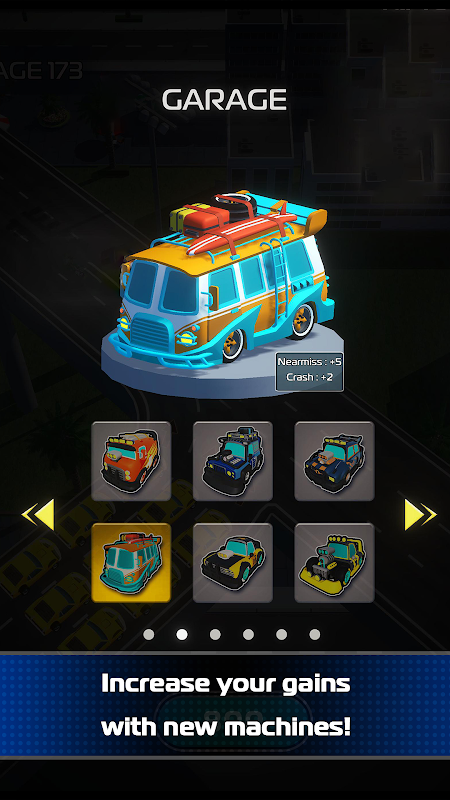Ganhe bônus com quase acidentes! Não se preocupe se os carros colidirem e ocorrerem acidentes, pois também há bônus de colisão. Consiga causar colisões em cadeia e ganhe ainda mais bônus!