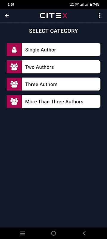 O aplicativo incorpora todos os cinco estilos principais de referência (Harvard, MLA, APA Chicago e MHRA) e, portanto, não é específico do assunto. Ele foi desenvolvido e projetado para ser simples, conveniente e fácil de usar. Não há requisitos para se registrar ou fazer login e nem requer quaisquer outros detalhes do usuário.