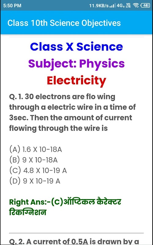 Class 10th Physics 50 Objectives questions and answers