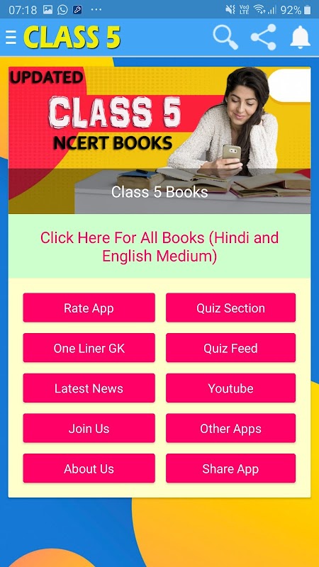 A livros completos, notas, soluções App para a classe 5 com vários assuntos MCQs.