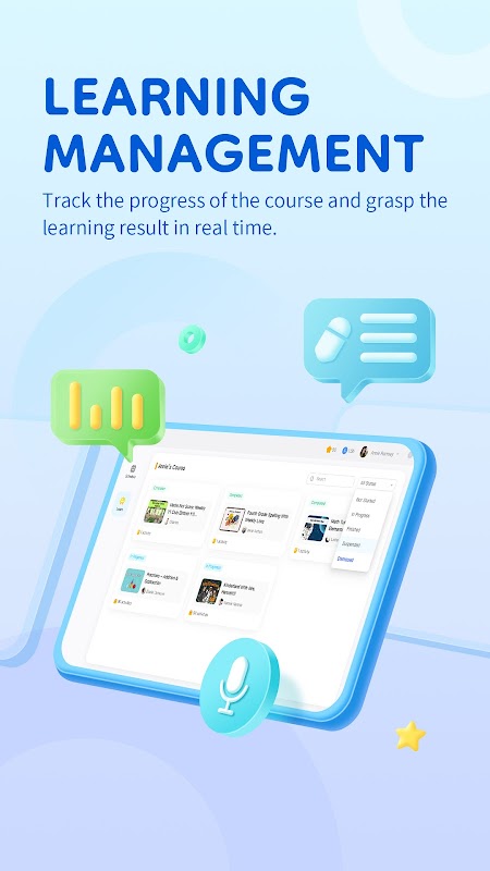 Na gestão da aprendizagem, você pode ver os dados estatísticos gerais da turma e obter seus próprios resultados de aprendizagem.