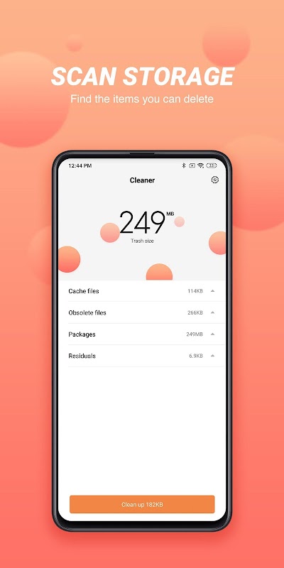 Cleaner Lite encontra cache, arquivos de lixo, pacotes de instalação obsoletos, dados residuais de aplicativos e outros itens que ocupam espaço de armazenamento em seu dispositivo e os exclui. Você sempre pode optar por manter certos itens que são importantes para você!