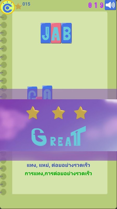 - เมื่อเลือกตัวอักษรในคำครบถ้วน จะได้รับคะแนนตามช่วงเวลาที่ทำได้