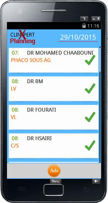 3. Consultation du planning des blocs opératoires et du statu de chaque intervention chirurgicale.