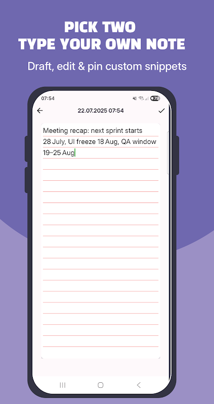 • Escreva suas próprias notas – um bloco de notas pautado para resumos de reuniões, listas de compras ou trechos de código.