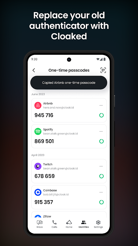 • GERE ALIASES DE E-MAIL E TELEFONES ILIMITADOS: O Cloaked gera números de telefone, endereços de e-mail, senhas e, em breve, cartões de crédito virtuais válidos, para que você possa ocultar sua identidade real ao se cadastrar ou fazer compras online. Usar aliases para cadastro e substituir credenciais antigas reduz drasticamente o spam e a exposição.