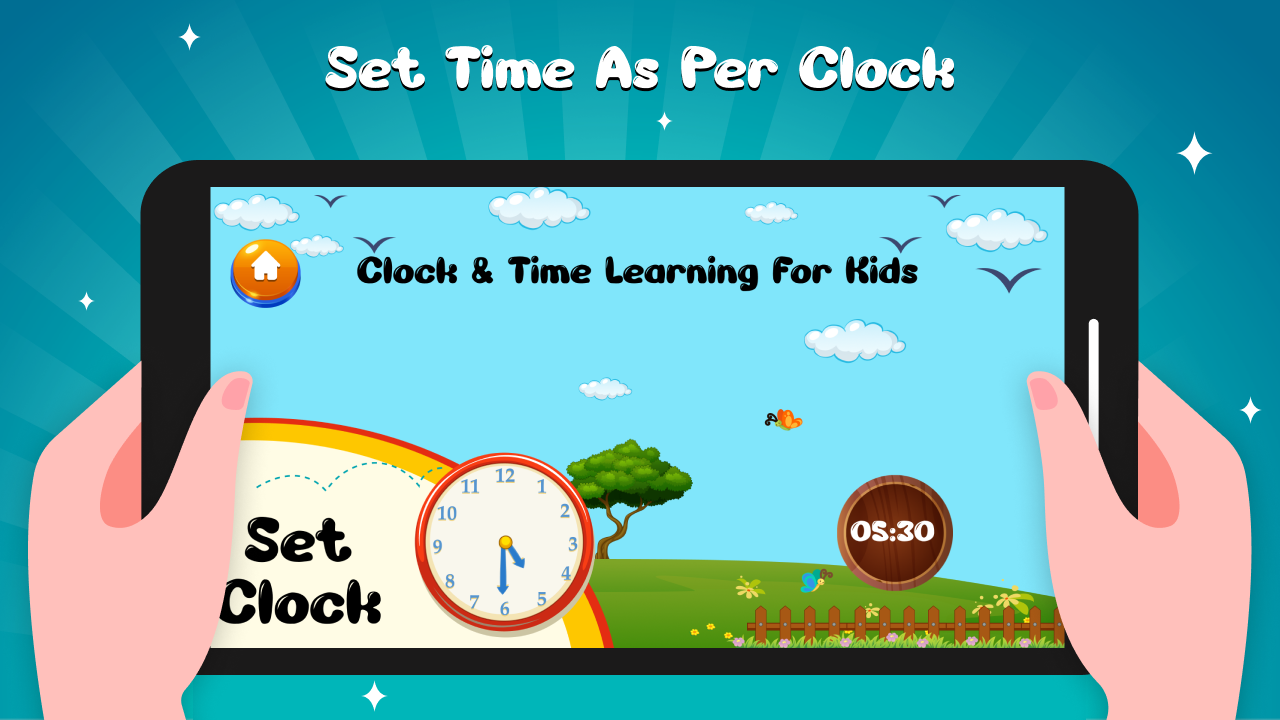 Clock & Time Learning For Kids ajuda a praticar seus filhos para contar as horas, acertar o relógio, acertar o relógio, testes de relógio e jogos para aprender sobre o tempo.