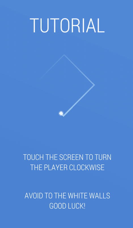 Tap on the screen to change the player's direction by 90 degrees clockwise. Try to evade the white walls.