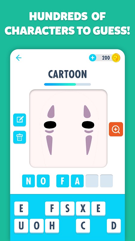 Close Up Character é um quiz de palavras gratuito onde você adivinha os nomes de personagens de desenhos animados, filmes e muito mais!