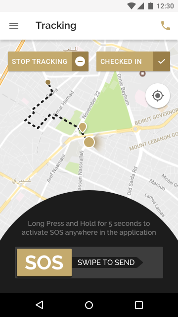 In-App SOS botão de pânico - enviar um SOS em um único toque, se você estiver na necessidade de assistência imediata e receber a resposta à crise rápida de nossos especialistas em segurança