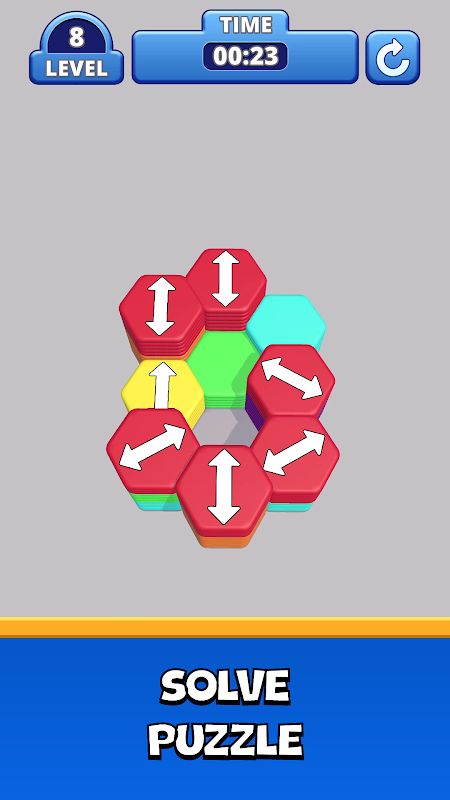 ✅ Combine cores - Empilhe hexágonos idênticos para eliminá-los!