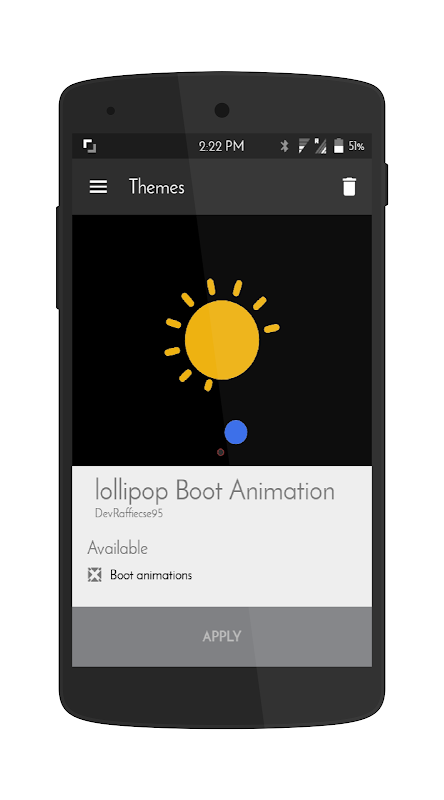 Simple and clean Android 5.1 lollipop inspired boot animation made for the Cyanogenmod Theme engine.
