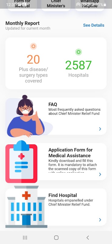Também fornece assistência financeira a cidadãos economicamente mais fracos para o tratamento de algumas das principais doenças.