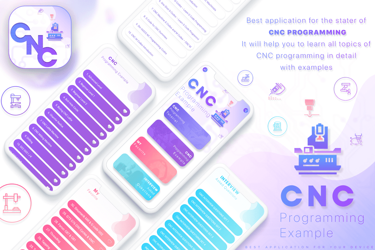 CNC Programming Example app - Lathe Machine Programming App will help you to learn cnc programmed easily with practical example. This is FREE app will teach you that how to use a CNC Programming Example and CNC Tutorial. This application is for beginners, professional and intermediate users .This app is useful for those who are starting to learn CNC Programming.