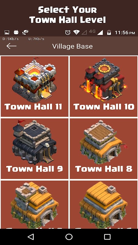 => All kinds of bases are available in the app, i.e. Village base, War Base, Builder Base, Engineered Base and Amazing Bases.