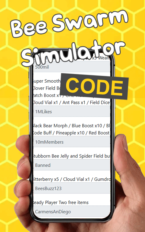 This app compiled a list of all the active Bee Swarm Simulator codes and how to redeem it. Dont forget to rate us. Will update regularly. Check it out, enjoy