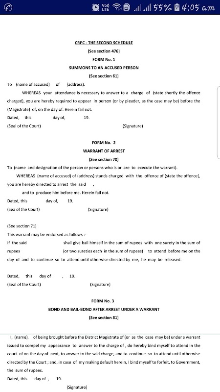 This app provides detailed provisions of Code of Criminal Procedure, Two Schedules and latest Judgements on the the Code of Criminal Procedure. In this mobile app, every efforts were made to see that there may not be any error but inspite of that if any unintentional clerical mistake or error of omission or else taken place, the same will be rectified in the later version. This App is not to provide any legal advice to any one and people interested are requested to refer other sources before reaching any inference. Suggestions are welcome at