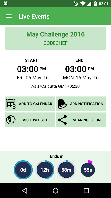 Users can choose to set up reminder for upcoming contests, and get notified before the contest starts. Contests can be added to their calendars directly from the app.