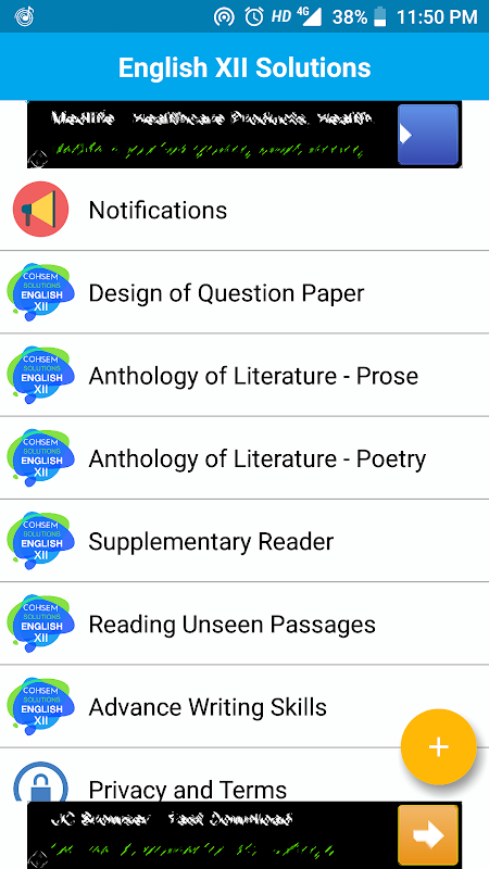 Um aplicativo que fornece soluções completas do inglês XII da COHSEM