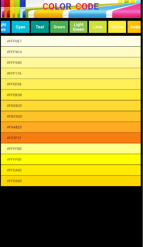 Welcome to Color Code. Color code app is very important for developer. There are so many color code in this app. you will get easily hex color code from this app. Hexadecimal color values are also supported in all browsers.