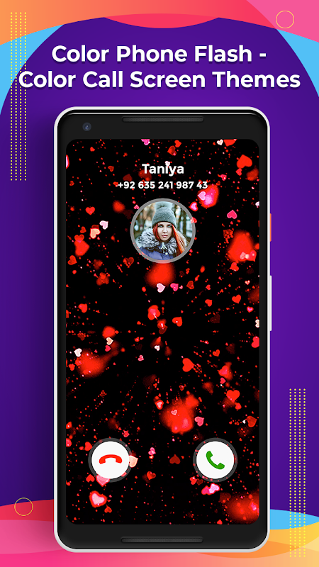 Color Phone Flash - Temas de Tela de Chamadas em Cores é incrível aplicação de arte com as mais recentes ferramentas.ele pode ter algum processo simples para fazer alterações no seu tema de chamada com cores atraentes e dinâmicas. aplicativo para essa tela de chamada de mudança com temas de tela de chamada impressionantes e LED flash alert.You pode escolher todos os temas de tela de chamador e alerta de lanterna LED para sua tela de chamada.